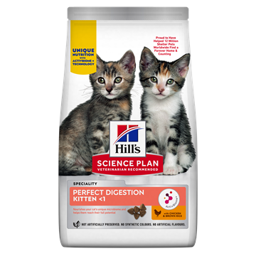Hill's Science Plan Perfect Digestion Kitten food contains ActivBiome+, a Hill's exclusive blend of prebiotics to nourish your cat's unique microbiome and help them reach their full potential.