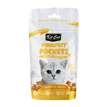 Pamper your cats with Kit Cat Purrfect Pockets featuring a dual-texture treat made from natural ingredients that guarantee satisfaction with every bite.