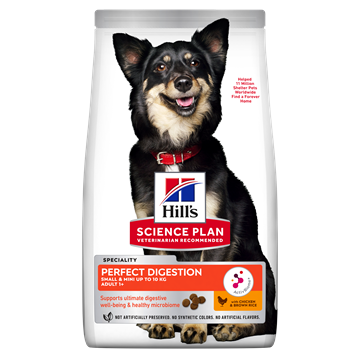Hill's Science Plan PERFECT DIGESTION SMALL & MINI Adult dog food with Chicken & Brown Rice Contains ActivBiome+, a Hill's exclusive blend of prebiotics to help rapidly nourish & balance your pet's unique microbiome.