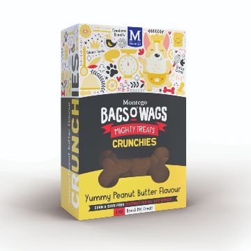Yummy Peanut Butter Flavour.Highly nutritious, wagtastically delicious, BAGS O' WAGS are the treats dogs love to get and they're full of om-nom-nice-to-munch-and-crunch goodness!