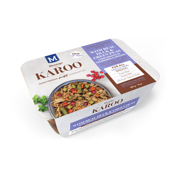 The Karoo Duck Tub is a wholesome meal for your dog, packed with tender duck, green peas, cranberries, and ground oregano.