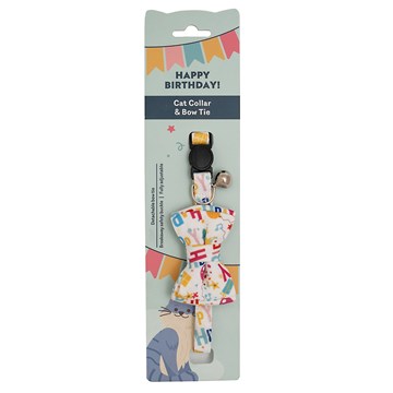 Make your cat’s special day extra memorable with the Happy Birthday Collar & Bow-Tie. Designed with festive “Happy Birthday” lettering and adorable cake and gift patterns, this adjustable collar fits comfortably on most cats. The attached bow-tie adds a charming touch, making it the perfect accessory for birthday photos or parties.