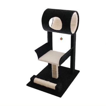 Our Rollin Royalty scratch post is a castle built with the needs of the household rulers in mind. A horizontal tunnel with cut outs encourages your furry royalty to practice their hunting skills whilst playing hide and seek with siblings. A large comfy throne bed covered in plush Mongolian faux fur is built for royalty. The vertical natural twine scratch post promotes back stretching through vertical scratching. At floor level a scratch roller encourages your cats to scratch away at their leisure, trimming those claws and diverting their attention from your furniture. The breakaway toy will encourage their hunting instincts with prey-like behaviours like pouncing and swatting.