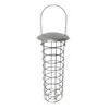 This is a bird feeder that can be hung in the garden. It holds suet balls and attracts a wide variety of wild birds.